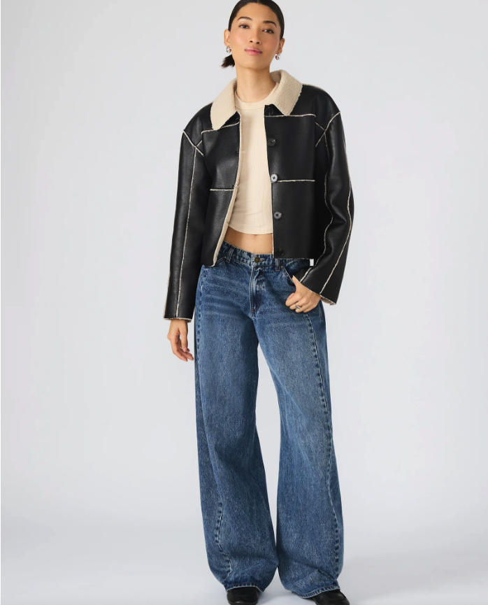 The TILIA coat combines sophisticated design with practical warmth. Featuring a long-sleeved silhouette and a luxurious faux fur collar, this faux leather jacket offers both style and comfort. Its button-up closure ensures a secure fit while enhancing the coat’s sleek, polished look.